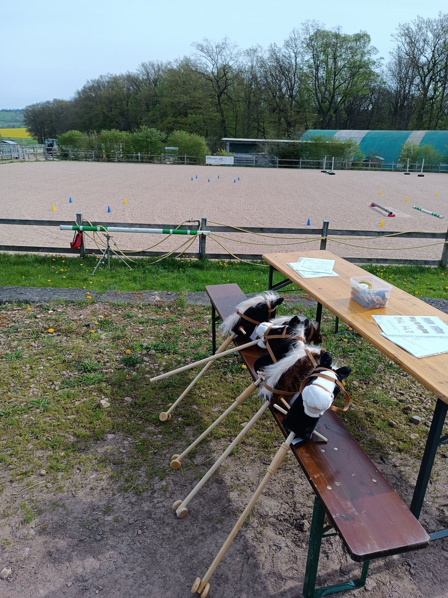 Bewegungsspiele mit den Steckenpferden oder anderen Parcours